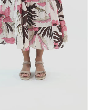 Wedge sandals. Taupe nappa leather. Velcro Closure. Leather lining. Anatomical insole. Lightweight, flexible, strong cork and EVA rubber sole. Heel height: 6.5 cm. 100% Made in Spain.
