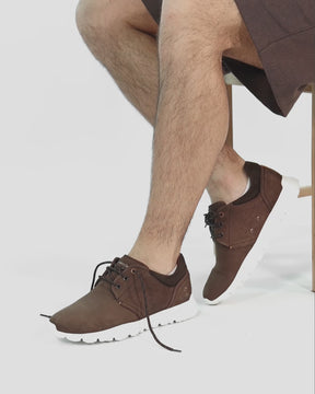 Men's sneakers. WATERPROOF Brown Nobuck Leather. Lace-up Closure. Leather lining. Removable anatomical insole. Lightweight, flexible and strong EVA rubber sole. Heel height: 5 cm. 100% Made in Spain.