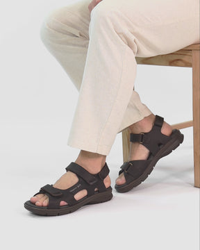 Men's sandals. Brown nappa grass leather. Velcro Closure. Lycra lining. Anatomical insole. Flexible and durable Polyurethane sole. Heel height: 5 cm. 100% Made in Spain.